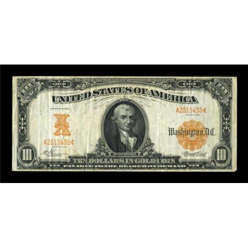 <B>Fr. 1167 $10 1907 Gold Certificate Very Fine.</B></I> A bright overprint highlights this crisp example.<BR><BR><b>Shipping:</b> Coins & Currency (<a target="_blank" href="http://www.heritageauctions.com/common/shipping.php">view shipping information</a>)