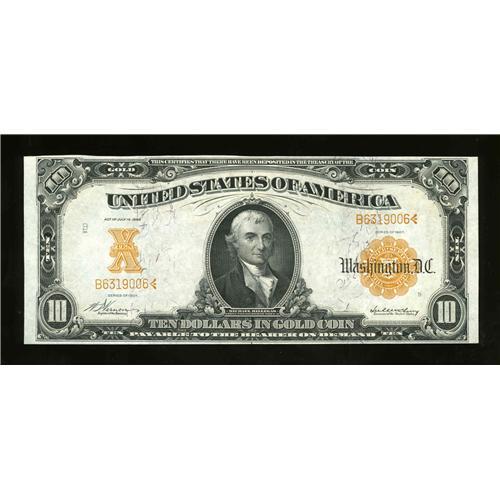<B>Fr. 1168 $10 1907 Gold Certificate Very Choice New.</B></I> Both the top and bottom margins are a bit irregular on this bright, fresh ten which features original surfaces.