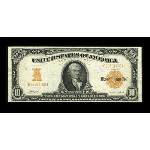 <B>Fr. 1169 $10 1907 Gold Certificate Fine-Very Fine.</B></I> A perfectly original piece with full remaining color.<BR><I>From The Plymouth Rock Collection</B></I>