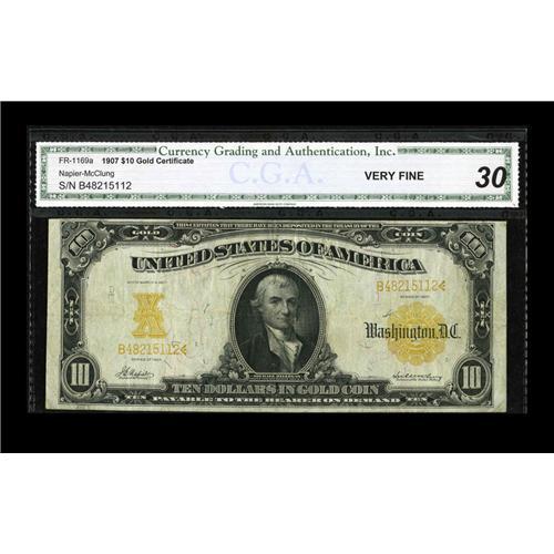 Fr. 1169a $10 1907 Gold Certificate CGA Very Fine 30. V Fr. 1169a $10 1907 Gold Certificate CGA Very