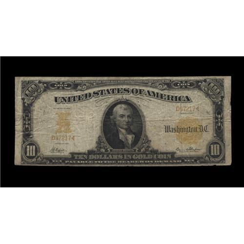 Fr. 1170 $10 1907 Gold Certificate Very Good-Fine. This Fr. 1170 $10 1907 Gold Certificate Very Good