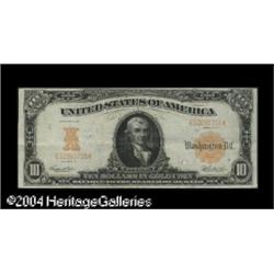 Fr. 1172 $10 1907 Gold Certificate Choice Very Fine. Cl <B>Fr. 1172 $10 1907 Gold Certificate Choice Very Fine.</B></I> Clean and bright, with perfect colors. <BR><BR><B>Important notice:</B> Heritage usually auctions material at the rate of 200-250 lots per hour. On some occasions eBay Live bid software or the Internet may not be able to keep up with the pace of the auction. We recommend placing a realistic absentee bid now as insurance to avoid disappointment. Occasionally the auctioneer may eliminate or reject an eBay Live bid, and the auctioneer may also reopen a lot after the close of the eBay live bidding (usually because we missed an audience bid), and may reject your bid even if it shows you as the winning bidder. By bidding via eBay Live, you agree that Heritage may award the lot to another bidder at its sole discretion under the circumstances described above or any other reasonable circumstances. Since eBay bids are not shown to us until we open the lot on the floor, we treat those bids just like floor bids. In most cases the floor responds before the eBay bid is presented to us, due to Internet lag time, so for consistency we have made it a policy that floor bids are always considered first over tie eBay live bids. Also please note that all Heritage lots purchased through eBay Live carry a 20% Buyer's Premium. Please make sure you read the Terms and Conditions before you bid. This lot is being auctioned in conjunction with a live floor auction by Heritage Galleries & Auctioneers. All final auction and invoice information will be supplied by Heritage Galleries & Auctioneers, and all other information should be considered preliminary. Lot:17780