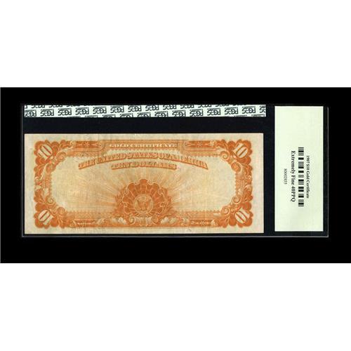 <B>Fr. 1172 $10 1907 Gold Certificate PCGS Extremely Fine 40PPQ.</B></I> This beautifully margined note has original paper surfaces that can clearly be seen through the third-party holder.