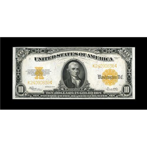 Fr. 1173 $10 1922 Gold Certificate About New. A horizon