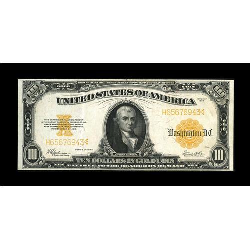 <B>Fr. 1173 $10 1922 Gold Certificate About New.</B></I> An attractive note with a single fold through the left serial number.<BR><BR><b>Shipping:</b> Coin/Currency (<a target="_blank" href="http://www.heritageauctions.com/common/shipping.php">view shipping information</a>)