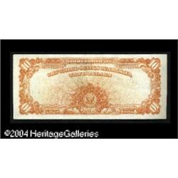 Fr. 1173 $10 1922 Gold Certificate Choice About New. <B>Fr. 1173 $10 1922 Gold Certificate Choice About New.</B></I> A handsome-looking Ten Dollar Gold Certificate that needs to be studied long and hard before the reason for the AU grade can be discovered. The margins are excellent, and the centering of both sides is more than acceptable. <BR><BR><B>Important notice:</B> Heritage usually auctions material at the rate of 200-250 lots per hour. On some occasions eBay Live bid software or the Internet may not be able to keep up with the pace of the auction. We recommend placing a realistic absentee bid now as insurance to avoid disappointment. Occasionally the auctioneer may eliminate or reject an eBay Live bid, and the auctioneer may also reopen a lot after the close of the eBay live bidding (usually because we missed an audience bid), and may reject your bid even if it shows you as the winning bidder. By bidding via eBay Live, you agree that Heritage may award the lot to another bidder at its sole discretion under the circumstances described above or any other reasonable circumstances. Since eBay bids are not shown to us until we open the lot on the floor, we treat those bids just like floor bids. In most cases the floor responds before the eBay bid is presented to us, due to Internet lag time, so for consistency we have made it a policy that floor bids are always considered first over tie eBay live bids. Also please note that all Heritage lots purchased through eBay Live carry a 20% Buyer's Premium. Please make sure you read the Terms and Conditions before you bid. This lot is being auctioned in conjunction with a live floor auction by Heritage Galleries & Auctioneers. All final auction and invoice information will be supplied by Heritage Galleries & Auctioneers, and all other information should be considered preliminary. Lot:17794