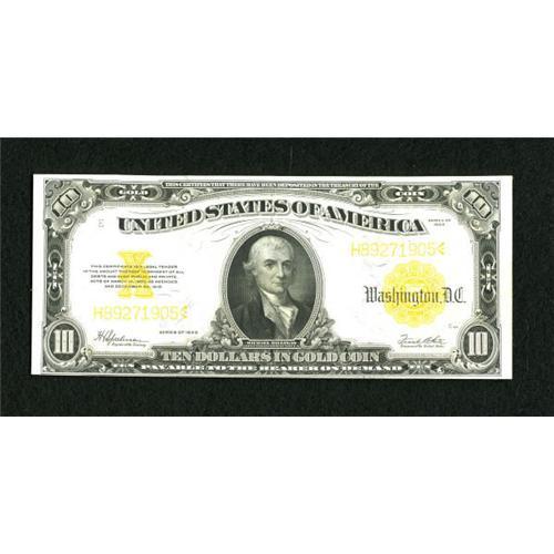 <B>Fr. 1173 $10 1922 Gold Certificate Choice About New.</B></I> A soft horizontal crease is noticed on this vividly hued note that has some embossing remaining.<BR><BR><b>Shipping:</b> Coins & Currency (<a target="_blank" href="http://www.heritageauctions.com/common/shipping.php">view shipping information</a>)