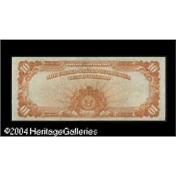 Fr. 1173 $10 1922 Gold Certificate Choice New. A good l <B>Fr. 1173 $10 1922 Gold Certificate Choice New.</B></I> A good looking Gold Certificate, with a touch of light soil on the back and a somewhat tight bottom margin. <BR><BR><B>Important notice:</B> Heritage usually auctions material at the rate of 200-250 lots per hour. On some occasions eBay Live bid software or the Internet may not be able to keep up with the pace of the auction. We recommend placing a realistic absentee bid now as insurance to avoid disappointment. Occasionally the auctioneer may eliminate or reject an eBay Live bid, and the auctioneer may also reopen a lot after the close of the eBay live bidding (usually because we missed an audience bid), and may reject your bid even if it shows you as the winning bidder. By bidding via eBay Live, you agree that Heritage may award the lot to another bidder at its sole discretion under the circumstances described above or any other reasonable circumstances. Since eBay bids are not shown to us until we open the lot on the floor, we treat those bids just like floor bids. In most cases the floor responds before the eBay bid is presented to us, due to Internet lag time, so for consistency we have made it a policy that floor bids are always considered first over tie eBay live bids. Also please note that all Heritage lots purchased through eBay Live carry a 20% Buyer's Premium. Please make sure you read the Terms and Conditions before you bid. This lot is being auctioned in conjunction with a live floor auction by Heritage Galleries & Auctioneers. All final auction and invoice information will be supplied by Heritage Galleries & Auctioneers, and all other information should be considered preliminary. Lot:17792