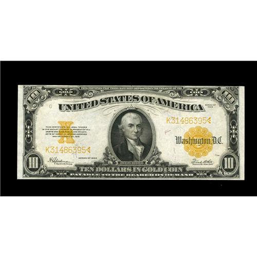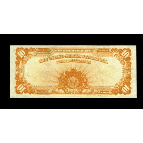 <B>Fr. 1173 $10 1922 Gold Certificate Choice New.</B></I> Were it not for a tight upper margin at right this note would surely fall into the Gem range. Original embossing remains strong and the colors are quite vivid.