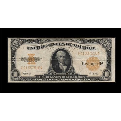 <B>Fr. 1173 $10 1922 Gold Certificate Extremely Fine.</B></I> A nice natural, problem-free note.