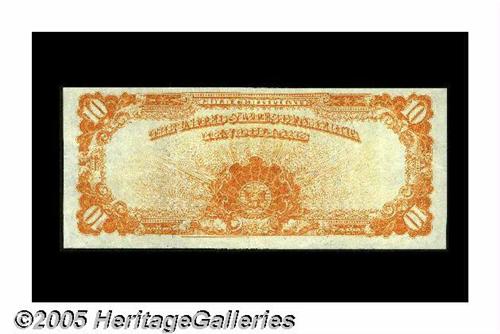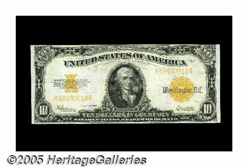 <B>Fr. 1173 $10 1922 Gold Certificate Extremely Fine.</B></I> A beautifully bright note that no fold counter (<I>exeffus limitus</B></I>) would grade higher than VF, a grade that would be most unfair to this totally original, completely clean note. It's picked up a fair number of folds, but retains every bit of its color, surfaces and just-out-the-door-of-the-Bureau cleanliness.