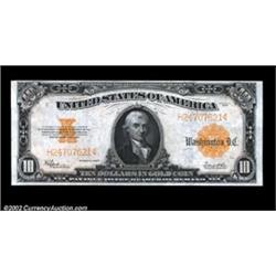 Fr. 1173 $10 1922 Gold Certificate Gem New. A gorgeous note, with deep original embossing, bright, flashy colors and margins that are quite even and unusually broad for this type. This is a note that is likely to please the most finicky of collectors, as they simply don't get much better than this. Important notice: We expect to be auctioning lots at the rate of 200-250 per hour. Sometimes eBay Premier live bid software cannot keep up with that pace, so we strongly recommend that you place a realistic proxy bid now as insurance to avoid disappointment. Also please note that all Heritage/CAA lots purchased through eBay Premier carry a 20% Buyer's Premium. Please make sure you read the Terms and Conditions.
