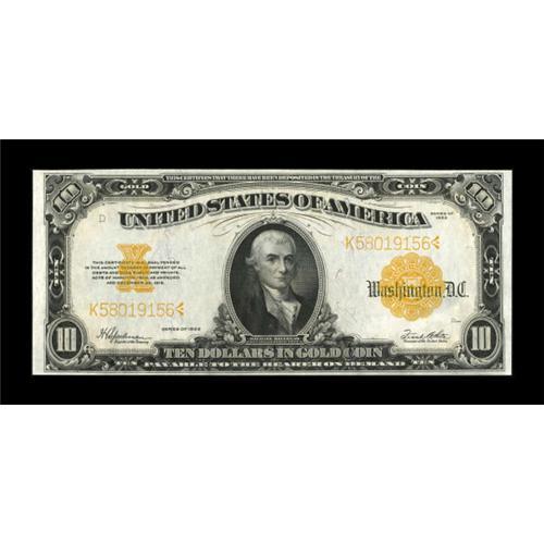 <B>Fr. 1173 $10 1922 Gold Certificate Gem New.</B></I> A Gem example of this basic $10 gold type note. The original paper embossing is easily seen, and the margins are far superior to the typically-encountered example.<BR><BR><b>Shipping:</b> Coins & Currency (<a target="_blank" href="http://www.heritageauctions.com/common/shipping.php">view shipping information</a>)