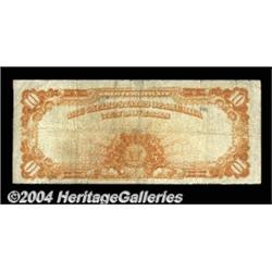 Fr. 1173 $10 1922 Gold Certificate Star Note Very Fine. This is the very rare Large Serial Number Mule Star. 116 pieces are listed by Murray for non-mules, but only two mules were known prior to this note's appearance. Back-plate number 142 appears boldly in the upper-right corner of the back, which is the position that was used for the Burke back plates. This note will create considerable bidder interest in the Star Note community, and it should realize a very solid price. <BR><BR><B>Important notice:</B> Heritage usually auctions material at the rate of 200-250 lots per hour. On some occasions eBay Live bid software or the Internet may not be able to keep up with the pace of the auction. We recommend placing a realistic absentee bid now as insurance to avoid disappointment. Occasionally the auctioneer may eliminate or reject an eBay Live bid, and the auctioneer may also reopen a lot after the close of the eBay live bidding (usually because we missed an audience bid), and may reject your bid even if it shows you as the winning bidder. By bidding via eBay Live, you agree that Heritage may award the lot to another bidder at its sole discretion under the circumstances described above or any other reasonable circumstances. Since eBay bids are not shown to us until we open the lot on the floor, we treat those bids just like floor bids. In most cases the floor responds before the eBay bid is presented to us, due to Internet lag time, so for consistency we have made it a policy that floor bids are always considered first over tie eBay live bids. Also please note that all Heritage lots purchased through eBay Live carry a 20% Buyer's Premium. Please make sure you read the Terms and Conditions before you bid. <BR><BR><B>IMPORTANT ANNOUNCEMENT ABOUT RESERVES:</B> Heritage now divulges all reserves on its web site 7 days before every auction. If you want to know whether the reserve on this lot has been met, and if not, what the reserve amount is, please visit this lot page on the HeritageCoin.com web site, or email: bid@HeritageGalleries.com