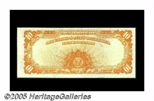<B>Fr. 1173 $10 1922 Gold Certificate Superb Gem Crisp Uncirculated.</B></I> Broad margins, ideal colors, and nice paper originality all combine on this lovely Gold Sawbuck. The back is also a bright flaming orange on this fresh note.
