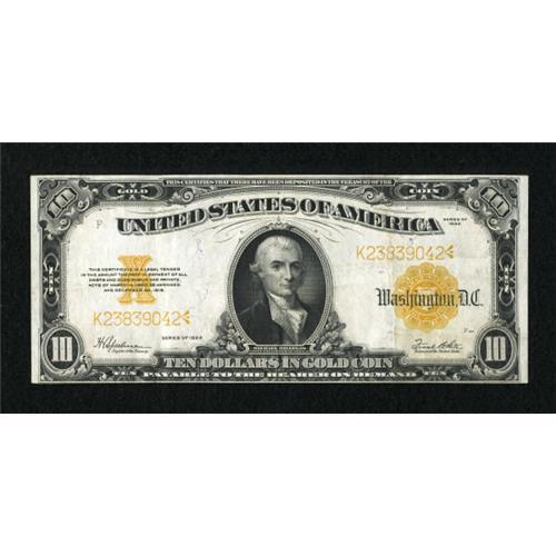 <B>Fr. 1173 $10 1922 Gold Certificate Very Fine.</B></I> This $10 Gold has nice original paper surfaces and color. The bottom edge is along the frame line.<BR><I>From The John Ameen Collection</B></I><BR><BR><b>Shipping:</b> Coins & Currency (<a target="_blank" href="http://www.heritageauctions.com/common/shipping.php">view shipping information</a>)