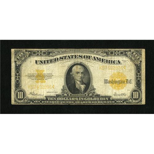 Fr. 1173 $10 1922 Gold Certificate Very Good-Fin