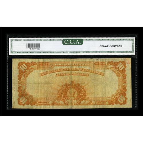 <B>Fr. 1173a $10 1922 Gold Certificate CGA Very Fine 25.</B></I> A moderately circulated issue with lightly toned paper.