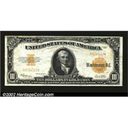 Fr. 1173a $10 1922 Gold Certificate Very Fine. This example has the smaller serial numbers, a scarcer variety that has recently gained momentum in its importance to collectors. Important notice: We expect to be auctioning lots at the rate of 200-250 per hour. Sometimes eBay Premier live bid software cannot keep up with that pace, so we strongly recommend that you place a realistic proxy bid now as insurance to avoid disappointment. Also please note that all Heritage/CAA lots purchased through eBay Premier carry a 20% Buyer's Premium.