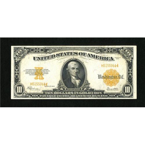 <B>Fr. 1173a $10 1922 Gold Certificate Very Fine-Extremely Fine.</B></I> While this note appears fully EF, there is some handling that precludes it from that full grade. The overprint and back design are especially bold and the paper is pleasing.<BR><I>From The Collection of Greg Southward</B></I><BR><BR><b>Shipping:</b> Coins & Currency (<a target="_blank" href="http://www.heritageauctions.com/common/shipping.php">view shipping information</a>)