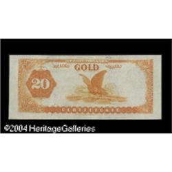 Fr. 1178 $20 1882 Gold Certificate Choice New. At a gla <B>Fr. 1178 $20 1882 Gold Certificate Choice About New.</B></I> At a glance, this 1882 Twenty appears to be a Gem. The margins are broad, the colors are spectacular and the note has perfect eye appeal. A lovely note. <BR><BR><B>Important notice:</B> Heritage usually auctions material at the rate of 200-250 lots per hour. On some occasions eBay Live bid software or the Internet may not be able to keep up with the pace of the auction. We recommend placing a realistic absentee bid now as insurance to avoid disappointment. Occasionally the auctioneer may eliminate or reject an eBay Live bid, and the auctioneer may also reopen a lot after the close of the eBay live bidding (usually because we missed an audience bid), and may reject your bid even if it shows you as the winning bidder. By bidding via eBay Live, you agree that Heritage may award the lot to another bidder at its sole discretion under the circumstances described above or any other reasonable circumstances. Since eBay bids are not shown to us until we open the lot on the floor, we treat those bids just like floor bids. In most cases the floor responds before the eBay bid is presented to us, due to Internet lag time, so for consistency we have made it a policy that floor bids are always considered first over tie eBay live bids. Also please note that all Heritage lots purchased through eBay Live carry a 20% Buyer's Premium. Please make sure you read the Terms and Conditions before you bid. This lot is being auctioned in conjunction with a live floor auction by Heritage Galleries & Auctioneers. All final auction and invoice information will be supplied by Heritage Galleries & Auctioneers, and all other information should be considered preliminary. Lot:17817