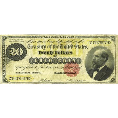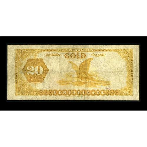 <B>Fr. 1178 $20 1882 Gold Certificate Fine.</B></I> A pair of pinholes seem to be the only compromises of the paper on this evenly circulated note.<BR><I>From The Plymouth Rock Collection</B></I>
