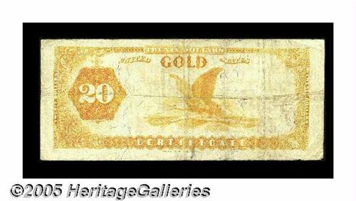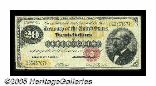 <B>Fr. 1178 $20 1882 Gold Certificate Fine-Very Fine.</B></I> Nicely margined and with strong color remaining on the often badly faded back.