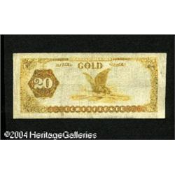 Fr. 1178 $20 1882 Gold Certificate Fine. Well circulate <B>Fr. 1178 $20 1882 Gold Certificate Fine.</B></I> Well circulated, but problem free. The back color has turned toward brown as is often the case. <BR><BR><B>Important notice:</B> Heritage usually auctions material at the rate of 200-250 lots per hour. On some occasions eBay Live bid software or the Internet may not be able to keep up with the pace of the auction. We recommend placing a realistic absentee bid now as insurance to avoid disappointment. Occasionally the auctioneer may eliminate or reject an eBay Live bid, and the auctioneer may also reopen a lot after the close of the eBay live bidding (usually because we missed an audience bid), and may reject your bid even if it shows you as the winning bidder. By bidding via eBay Live, you agree that Heritage may award the lot to another bidder at its sole discretion under the circumstances described above or any other reasonable circumstances. Since eBay bids are not shown to us until we open the lot on the floor, we treat those bids just like floor bids. In most cases the floor responds before the eBay bid is presented to us, due to Internet lag time, so for consistency we have made it a policy that floor bids are always considered first over tie eBay live bids. Also please note that all Heritage lots purchased through eBay Live carry a 20% Buyer's Premium. Please make sure you read the Terms and Conditions before you bid. This lot is being auctioned in conjunction with a live floor auction by Heritage Galleries & Auctioneers. All final auction and invoice information will be supplied by Heritage Galleries & Auctioneers, and all other information should be considered preliminary. Lot:17821