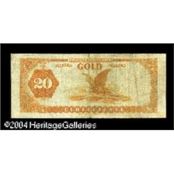 Fr. 1178 $20 1882 Gold Certificate Fine. Well margined, <B>Fr. 1178 $20 1882 Gold Certificate Fine.</B></I> Well margined, with excellent color and no problems save for normal circulation. The gold back color has held up very nicely for the grade.<BR><I>From the collection of Stanley M. Zurawski, Jr.</B></I> <BR><BR><B>Important notice:</B> Heritage usually auctions material at the rate of 200-250 lots per hour. On some occasions eBay Live bid software or the Internet may not be able to keep up with the pace of the auction. We recommend placing a realistic absentee bid now as insurance to avoid disappointment. Occasionally the auctioneer may eliminate or reject an eBay Live bid, and the auctioneer may also reopen a lot after the close of the eBay live bidding (usually because we missed an audience bid), and may reject your bid even if it shows you as the winning bidder. By bidding via eBay Live, you agree that Heritage may award the lot to another bidder at its sole discretion under the circumstances described above or any other reasonable circumstances. Since eBay bids are not shown to us until we open the lot on the floor, we treat those bids just like floor bids. In most cases the floor responds before the eBay bid is presented to us, due to Internet lag time, so for consistency we have made it a policy that floor bids are always considered first over tie eBay live bids. Also please note that all Heritage lots purchased through eBay Live carry a 20% Buyer's Premium. Please make sure you read the Terms and Conditions before you bid. This lot is being auctioned in conjunction with a live floor auction by Heritage Galleries & Auctioneers. All final auction and invoice information will be supplied by Heritage Galleries & Auctioneers, and all other information should be considered preliminary. Lot:17820