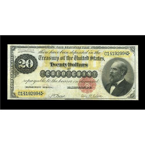 Fr. 1178 $20 1882 Gold Certificate Very Fine+. A bright Fr. 1178 $20 1882 Gold Certificate Very Fine