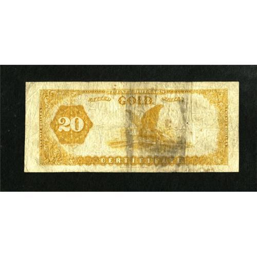 Fr. 1178 $20 1882 Gold Certificate Very Good.
