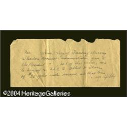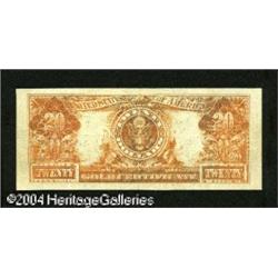 Fr. 1179 $20 1905 Gold Certificate Extremely Fine. This <B>Fr. 1179 $20 1905 Gold Certificate Extremely Fine.</B></I> This serial number 3 example has as bold as face colors of any Technicolor $20 we've ever handled. When we sold the serial number 1 note of this series, we heard repeated rumors of the existence of this number 3 note, but were unable to verify it. We were also told by several sources, again unverifiable, that the number 1 note had been presented to President Theodore Roosevelt. This note, and its accompanying paper work, recently surfaced in an antique auction in the Pacific Northwest, and proves these theories correct beyond any doubt. Handwritten on the envelope in obvious contemporary script, "Mr. Shaw, Secy. of Treasury during Theodore Roosevelt's Administration, gave to the President <BR>oosevelt no. 1 of this series, no. 2 to himself & no. 3 to Gilbert G. Thorne of $20 Gold Notes issued at that time." In a different handwriting underneath is the notation "in safe deposit box." While the front of this note has spectacular original color, a few areas on the back have turned toward the golden brown color that is often seen on this series. The number 1 note was sold by us in May 2001 for $176,000. This note, while just as historically significant, will no doubt bring a bit less this evening. <BR><BR><B>Important notice:</B> Heritage usually auctions material at the rate of 200-250 lots per hour. On some occasions eBay Live bid software or the Internet may not be able to keep up with the pace of the auction. We recommend placing a realistic absentee bid now as insurance to avoid disappointment. Occasionally the auctioneer may eliminate or reject an eBay Live bid, and the auctioneer may also reopen a lot after the close of the eBay live bidding (usually because we missed an audience bid), and may reject your bid even if it shows you as the winning bidder. By bidding via eBay Live, you agree that Heritage may award the lot to another bidder at its sole discretion under the circumstances described above or any other reasonable circumstances. Since eBay bids are not shown to us until we open the lot on the floor, we treat those bids just like floor bids. In most cases the floor responds before the eBay bid is presented to us, due to Internet lag time, so for consistency we have made it a policy that floor bids are always considered first over tie eBay live bids. Also please note that all Heritage lots purchased through eBay Live carry a 20% Buyer's Premium. Please make sure you read the Terms and Conditions before you bid. This lot is being auctioned in conjunction with a live floor auction by Heritage Galleries & Auctioneers. All final auction and invoice information will be supplied by Heritage Galleries & Auctioneers, and all other information should be considered preliminary. Lot:17823