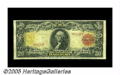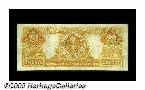 <B>Fr. 1179 $20 1905 Gold Certificate Fine.</B></I> An amply margined example of the always popular Technicolor Gold Certificate. A small margin separation at right is noted and the surfaces are a bit soft. The colors on the back are also a trifle muted.