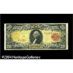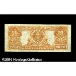 Fr. 1179 $20 1905 Gold Certificate Fine. This is a well <B>Fr. 1179 $20 1905 Gold Certificate Fine.</B></I> This is a well-circulated but totally problem free example of this popular Technicolor Gold Certificate. It's well margined, and it has retained the strong colors that give this note its name. The ink on the back has held all of its original color, which is quite unusual for this scarce type. Notes in this grade from this Technicolor series almost universally have a washed-out, ragged appearance. That is not the case at all with this example. <BR><BR><B>Important notice:</B> Heritage usually auctions material at the rate of 200-250 lots per hour. On some occasions eBay Live bid software or the Internet may not be able to keep up with the pace of the auction. We recommend placing a realistic absentee bid now as insurance to avoid disappointment. Occasionally the auctioneer may eliminate or reject an eBay Live bid, and the auctioneer may also reopen a lot after the close of the eBay live bidding (usually because we missed an audience bid), and may reject your bid even if it shows you as the winning bidder. By bidding via eBay Live, you agree that Heritage may award the lot to another bidder at its sole discretion under the circumstances described above or any other reasonable circumstances. Since eBay bids are not shown to us until we open the lot on the floor, we treat those bids just like floor bids. In most cases the floor responds before the eBay bid is presented to us, due to Internet lag time, so for consistency we have made it a policy that floor bids are always considered first over tie eBay live bids. Also please note that all Heritage lots purchased through eBay Live carry a 20% Buyer's Premium. Please make sure you read the Terms and Conditions before you bid. This lot is being auctioned in conjunction with a live floor auction by Heritage Galleries & Auctioneers. All final auction and invoice information will be supplied by Heritage Galleries & Auctioneers, and all other information should be considered preliminary. Lot:17824