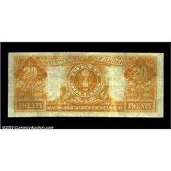 Fr. 1179 $20 1905 Gold Certificate Very Fine. A nicely margined example of this popular "Technicolor" type. The face colors are terrific, and the back is a bold orange, which is unusual for this type in circulated grade, as for some reason, the backs tended to fade very quickly. This scarce type is difficult to locate in problem-free middle grades, and this is quite a nice example. Important notice: We expect to be auctioning lots at the rate of 200-250 per hour. Sometimes eBay Premier live bid software cannot keep up with that pace, so we strongly recommend that you place a realistic proxy bid now as insurance to avoid disappointment. Also please note that all Heritage/CAA lots purchased through eBay Premier carry a 20% Buyer's Premium. Please make sure you read the Terms and Conditions.