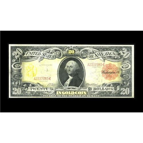 <B>Fr. 1180 $20 1905 Gold Certificate Fine.</B></I> The surfaces are soft, and the note has a little color loss as well as three minor repairs. That said, this is a scarce and popular type that in spite of its problems could well realize...<BR><I>From The Ross Bailey Collection</B></I>