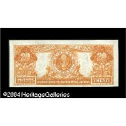 Fr. 1180 $20 1905 Gold Certificate Superb Gem New. This <B>Fr. 1180 $20 1905 Gold Certificate Superb Gem New.</B></I> This Technicolor Twenty has glowing colors, huge margins and deep, original embossing. The note comes from a small hoard of high-grade Twenty Dollar 1905's that William Philpot purchased from a friend who had worked at the Treasury Department. There were originally 25 notes in the group that were not consecutive, but all came from the pack that began A4043___. Market appearances of truly Superb Fr. 1180's are few and far between. When they are encountered, they are almost all from this same small group, a number of which have picked up light problems over the years. This example, which was acquired by Malcolm Trask, is the equal of any note of this type that we've seen. Including this note, we've now handled nine pieces from that original group of 25. None has been superior to this letter-perfect example.<BR><I>From the collection of Malcolm A. Trask.</B></I> <BR><BR><B>Important notice:</B> Heritage usually auctions material at the rate of 200-250 lots per hour. On some occasions eBay Live bid software or the Internet may not be able to keep up with the pace of the auction. We recommend placing a realistic absentee bid now as insurance to avoid disappointment. Occasionally the auctioneer may eliminate or reject an eBay Live bid, and the auctioneer may also reopen a lot after the close of the eBay live bidding (usually because we missed an audience bid), and may reject your bid even if it shows you as the winning bidder. By bidding via eBay Live, you agree that Heritage may award the lot to another bidder at its sole discretion under the circumstances described above or any other reasonable circumstances. Since eBay bids are not shown to us until we open the lot on the floor, we treat those bids just like floor bids. In most cases the floor responds before the eBay bid is presented to us, due to Internet lag time, so for consistency we have made it a policy that floor bids are always considered first over tie eBay live bids. Also please note that all Heritage lots purchased through eBay Live carry a 20% Buyer's Premium. Please make sure you read the Terms and Conditions before you bid. This lot is being auctioned in conjunction with a live floor auction by Heritage Galleries & Auctioneers. All final auction and invoice information will be supplied by Heritage Galleries & Auctioneers, and all other information should be considered preliminary. Lot:17825