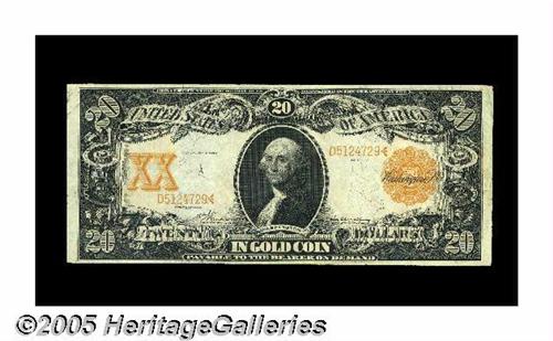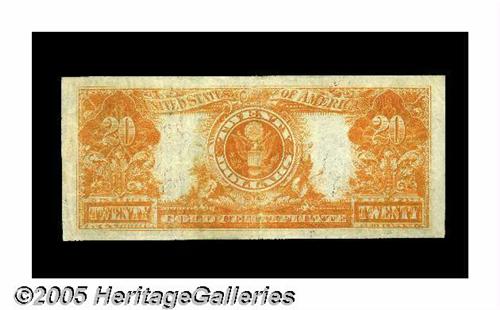 <B>Fr. 1181 $20 1906 Gold Certificate Extremely Fine.</B></I> An exceptionally bright note still displaying a fully embossed treasury seal. The margins are more than ample all around. A nice note for the collector wanting a still very good-looking example at a fraction of the $4,500+ price a Gem might command. Bidders should also keep in mind that this is quite a scarce Friedberg number, with only about 40 pieces documented in all grades combined.