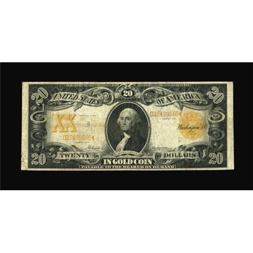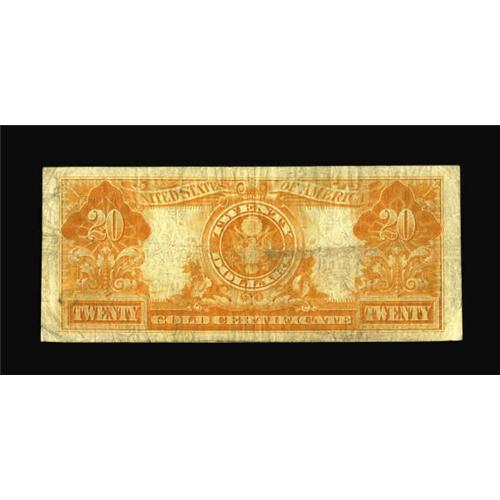 <B>Fr. 1183 $20 1906 Gold Certificate Fine.</B></I> Well-circulated but problem-free, and just a hair below the full Very Fine grade. Evenly circulated, damage-free Gold Certificates are hard to come by. <BR><BR><b>Shipping:</b> Coins & Currency (<a target="_blank" href="http://www.heritageauctions.com/common/shipping.php">view shipping information</a>)
