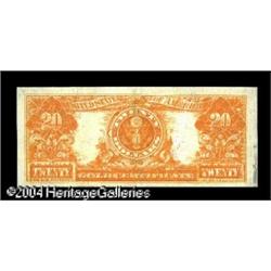 Fr. 1185 $20 1906 Gold Certificate About New. A pretty, <B>Fr. 1185 $20 1906 Gold Certificate About New.</B></I> A pretty, brightly colored Gold Note with just a touch of handling. It has broad margins and excellent eye appeal. <BR><BR><B>Important notice:</B> Heritage usually auctions material at the rate of 200-250 lots per hour. On some occasions eBay Live bid software or the Internet may not be able to keep up with the pace of the auction. We recommend placing a realistic absentee bid now as insurance to avoid disappointment. Occasionally the auctioneer may eliminate or reject an eBay Live bid, and the auctioneer may also reopen a lot after the close of the eBay live bidding (usually because we missed an audience bid), and may reject your bid even if it shows you as the winning bidder. By bidding via eBay Live, you agree that Heritage may award the lot to another bidder at its sole discretion under the circumstances described above or any other reasonable circumstances. Since eBay bids are not shown to us until we open the lot on the floor, we treat those bids just like floor bids. In most cases the floor responds before the eBay bid is presented to us, due to Internet lag time, so for consistency we have made it a policy that floor bids are always considered first over tie eBay live bids. Also please note that all Heritage lots purchased through eBay Live carry a 20% Buyer's Premium. Please make sure you read the Terms and Conditions before you bid. This lot is being auctioned in conjunction with a live floor auction by Heritage Galleries & Auctioneers. All final auction and invoice information will be supplied by Heritage Galleries & Auctioneers, and all other information should be considered preliminary. Lot:17831
