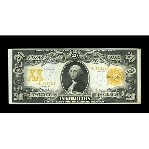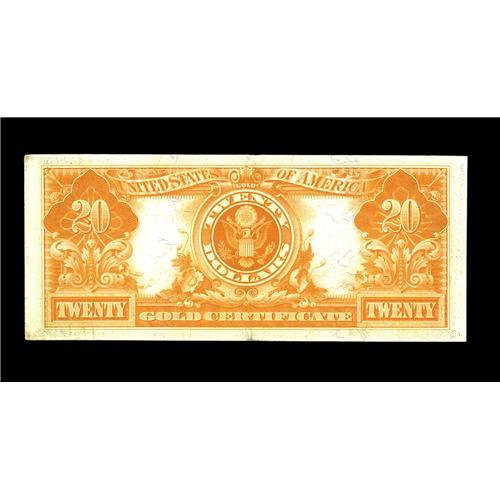 <B>Fr. 1185 $20 1906 Gold Certificate About New.</B></I> A pretty, brightly colored Gold Note with just a touch of handling. It has broad margins and excellent eye appeal.