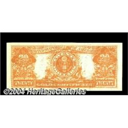 Fr. 1185 $20 1906 Gold Certificate Choice About New. This Parker-Burke signed Gold Twenty has the appearance of an absolute Gem, a grade that is prevented by the presence of a single extremely light center fold. The colors, centering and surfaces are all pristine. <BR><BR><B>Important notice:</B> Heritage usually auctions material at the rate of 200-250 lots per hour. On some occasions eBay Live bid software or the Internet may not be able to keep up with the pace of the auction. We recommend placing a realistic absentee bid now as insurance to avoid disappointment. Occasionally the auctioneer may eliminate or reject an eBay Live bid, and the auctioneer may also reopen a lot after the close of the eBay live bidding (usually because we missed an audience bid), and may reject your bid even if it shows you as the winning bidder. By bidding via eBay Live, you agree that Heritage may award the lot to another bidder at its sole discretion under the circumstances described above or any other reasonable circumstances. Since eBay bids are not shown to us until we open the lot on the floor, we treat those bids just like floor bids. In most cases the floor responds before the eBay bid is presented to us, due to Internet lag time, so for consistency we have made it a policy that floor bids are always considered first over tie eBay live bids. Also please note that all Heritage lots purchased through eBay Live carry a 20% Buyer's Premium. Please make sure you read the Terms and Conditions before you bid. <BR><BR><B>IMPORTANT ANNOUNCEMENT ABOUT RESERVES:</B> Heritage now divulges all reserves on its web site 7 days before every auction. If you want to know whether the reserve on this lot has been met, and if not, what the reserve amount is, please visit this lot page on the HeritageCoin.com web site, or email: bid@HeritageGalleries.com