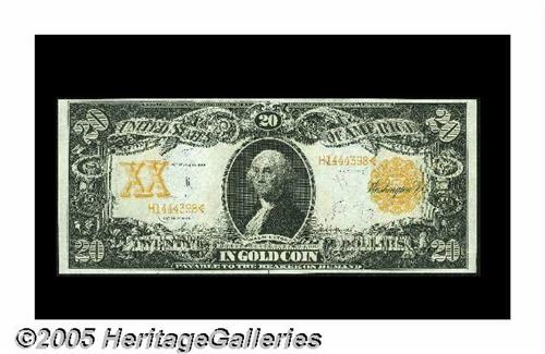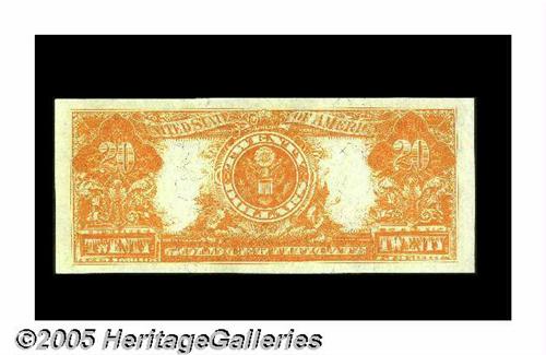 <B>Fr. 1185 $20 1906 Gold Certificate Gem New.</B></I> The colors are absolutely perfect on this bright, well-margined 1906 Twenty. Seldom is this series seen with the eye appeal of this stunning piece.