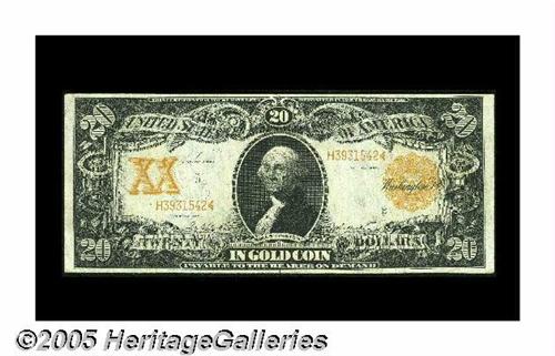 <B>Fr. 1185 $20 1906 Gold Certificate Very Fine.</B></I> Here is a nice note for the type collector looking for a scarcer $20 Gold than the often encountered Fr. 1187.