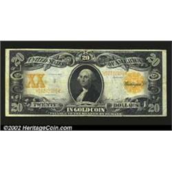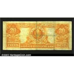 Fr. 1186 $20 1906 Gold Certificate Fine-Very Fine. The orange obverse overprint and reverse imprint are particularly bold. Important notice: We expect to be auctioning lots at the rate of 200-250 per hour. Sometimes eBay Premier live bid software cannot keep up with that pace, so we strongly recommend that you place a realistic proxy bid now as insurance to avoid disappointment. Also please note that all Heritage/CAA lots purchased through eBay Premier carry a 20% Buyer's Premium.