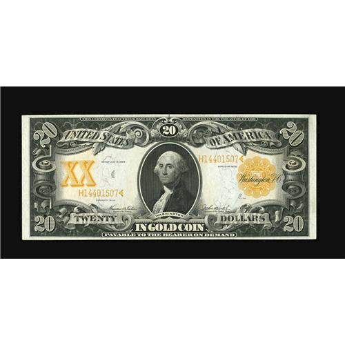 <B>Fr. 1186 $20 1906 Gold Certificate Gem New.</B></I> Excellent margins, full bright and flashy colors, and deep embossing all come together on this fresh Gold Certificate. A very nice piece.<BR><BR><b>Shipping:</b> Coin/Currency (<a target="_blank" href="http://www.heritageauctions.com/common/shipping.php">view shipping information</a>)