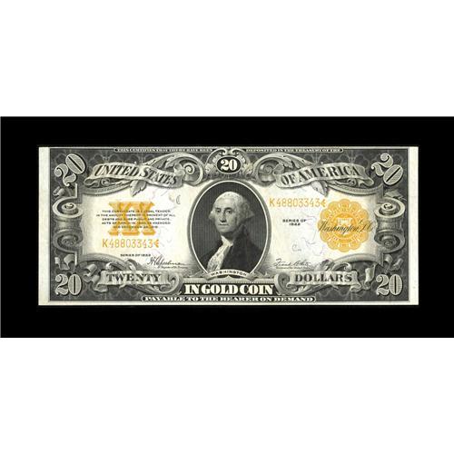 <B>Fr. 1187 $20 1922 Gold Certificate About New.</B></I> Deep golden orange color is noted on the overprint and back design. With a tight top margin it still appears fully Choice, though a lone centerfold is noted.<BR><BR><b>Shipping:</b> Coin/Currency (<a target="_blank" href="http://www.heritageauctions.com/common/shipping.php">view shipping information</a>)