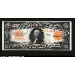 Fr. 1187 $20 1922 Gold Certificate Choice About New. Blazing colors on both sides highlight this strictly original note. It has tons of eye appeal, and its only problem is a tight top margin that comes close to, but does not touch, the frame line at its left. Important notice: We expect to be auctioning lots at the rate of 200-250 per hour. Sometimes eBay Premier live bid software cannot keep up with that pace, so we strongly recommend that you place a realistic proxy bid now as insurance to avoid disappointment. Also please note that all Heritage/CAA lots purchased through eBay Premier carry a 20% Buyer's Premium. Please make sure you read the Terms and Conditions.