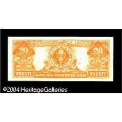 Fr. 1187 $20 1922 Gold Certificate Choice New. Great or <B>Fr. 1187 $20 1922 Gold Certificate Choice New.</B></I> Great original paper surfaces and ideal colors. Held from the Gem grade only by a tight bottom margin. <BR><BR><B>Important notice:</B> Heritage usually auctions material at the rate of 200-250 lots per hour. On some occasions eBay Live bid software or the Internet may not be able to keep up with the pace of the auction. We recommend placing a realistic absentee bid now as insurance to avoid disappointment. Occasionally the auctioneer may eliminate or reject an eBay Live bid, and the auctioneer may also reopen a lot after the close of the eBay live bidding (usually because we missed an audience bid), and may reject your bid even if it shows you as the winning bidder. By bidding via eBay Live, you agree that Heritage may award the lot to another bidder at its sole discretion under the circumstances described above or any other reasonable circumstances. Since eBay bids are not shown to us until we open the lot on the floor, we treat those bids just like floor bids. In most cases the floor responds before the eBay bid is presented to us, due to Internet lag time, so for consistency we have made it a policy that floor bids are always considered first over tie eBay live bids. Also please note that all Heritage lots purchased through eBay Live carry a 20% Buyer's Premium. Please make sure you read the Terms and Conditions before you bid. This lot is being auctioned in conjunction with a live floor auction by Heritage Galleries & Auctioneers. All final auction and invoice information will be supplied by Heritage Galleries & Auctioneers, and all other information should be considered preliminary. Lot:17843