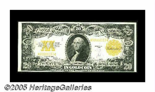 <B>Fr. 1187 $20 1922 Gold Certificate Choice New.</B></I> The bottom margin is very tight at the right on this otherwise stunning Gold Twenty.